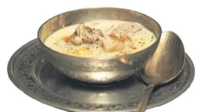 AK ÇORBA (Ayran çorbası bu; un/dövme ve yoğurtla yapılıyor, 16. yüzyılda sarayda pişiriliyor).