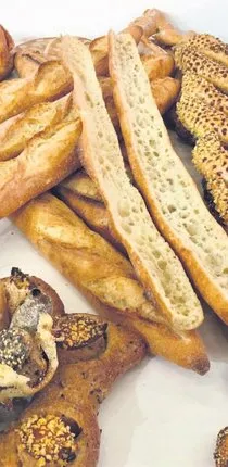 Nohut unu ile patatesli, biberiyeli ekmek. Kuru üzüm ve cevizli karabuğday ekmeği. Biberiye, fesleğen ve taze otlarla karamelize soğanlı focaccia.