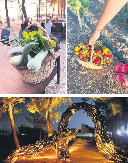 Bu arada çiftlikte mevsimine uygun ekim yapılıyor böylelikle doğaya müdahale etmeden, doğanın iş birliğiyle mevsiminde üretilen sebze ve meyveler yetişiyor.