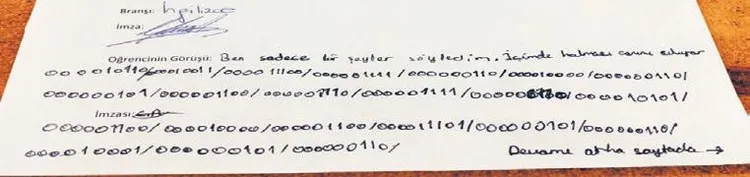 14 yaşındaki lise öğrencisi Can'ın öğretmenine binary kodlamasıyla verdiği Aziz Nesin'den alıntılı yanıt.