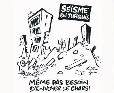 Fransız Charlie Hebdo'nun, bu ilk vukuatı değil! İslam dünyasını ayağa kaldıran Hz.Muhammed karikatürü, İtalya depremi sonrası acılarla dalga geçen karikatüründen sonra, Türkiye'deki depremi çirkince karikatürize etmesi, büyük tepki gördü. Yıkım ve cesetleri resmeden ve 'Tank göndermeye bile gerek yok' eklemesi yapılan karikatür için, akademisyeninden, siyasetçisine tepkiler büyüdü.