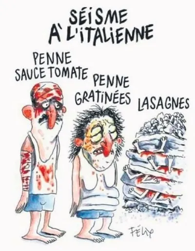 Charlie Hebdo'nun bu ilk skandalı değil... İtalya'da 24 Ağustos 2016'da meydana gelen depremin ardından Charlie Hebdo, 2 Eylül'de yayımladığı "İtalyan usulü deprem" başlıklı karikatürde, kanlar içindeki bir depremzede çizimini "domates soslu penne", bir diğerini "penne graten", enkaz arasından görülen kanlı vücut parçalarını da "lazanya"ya benzetmişti. Karikatürün İtalya'da büyük tepki çekmesi üzerine Charlie Hebdo ikinci bir karikatürle cevap vermiş ve öfkeli İtalyanlara "Evlerinizi Charlie Hebdo değil mafya yaptı" diye seslenmişti. İlk karikatürün ardından deprem acısına duyarsızlıkla suçlanan Charlie Hebdo, bu ikinci karikatürün ardından da İtalya'yı mafya ve makarnadan ibaret görmekle itham edilmeye başlamıştı.