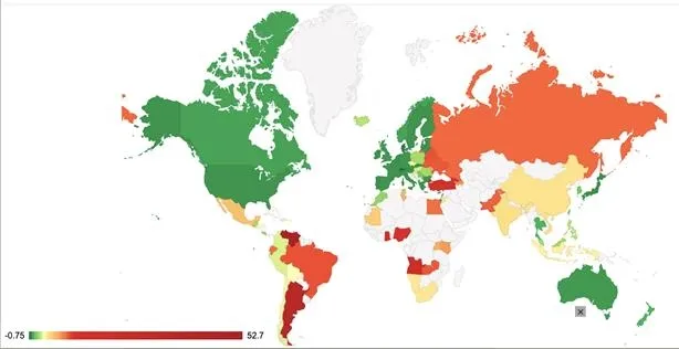 Şekil 1 Küresel politika faizi dağılımı. Kaynak: BIS ve CountryEconomy