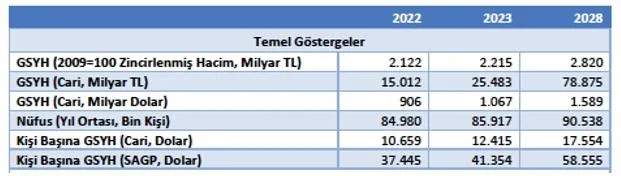 2023 sonunda %65'i bulması beklenen enflasyonun, 2028 sonunda, uzun vadeli hedef olan %5'in altına düşürülmesi hedefleniyor. Dış finansman gereksiniminin minimize edilmesi, cari-açığın finansmanının da çeşitlendirilmesi hedeflenmektedir. Bu noktada da enerji ithalatının azaltılması ve tasarrufların artırılması ile birlikte özellikle de hizmet sektöründeki döviz kazandırıcı faaliyetlerin teşviki ve çeşitlendirilmesi Türkiye'nin elini güçlendirecektir. Turizm gelirlerinin 100 milyar doların üzerine çıkarılması vurgusu da bir o kadar değerlidir.