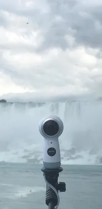 Samsung Gear 360'ı ve onunla birlikte Galaxy S8+'i eşlik ettiği zorlu koşullarda deneme fırsatı buldum. Tek tuşla minik ekranda hangi çekim modunu kullanacağınızı belirliyorsunuz. Sesli uyarı çekim modunun değiştiğini anlamanızı sağlıyor. Dünyanın en büyük şelalelerinden biri Niagara'da deneme fırsatım oldu. İşin güzeli harika görüntüler elde ederken çekimi hangi koşullarda yaptığınızı görmek de keyifli oluyor. Cihazın uygulamasını telefona yükleyerek işe başlayın. Çünkü monopod veya tripoda taktığınızda uzaktan izleme ve kumanda etme şansınız artıyor.