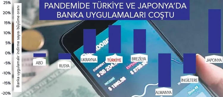 Japonya, analiz edilen ülkeler arasında bankacılık uygulaması indirmelerinde başı çekiyor. Apptopia'nın verilerine göre, diğer gelişmiş ekonomiler son 12 ayda kurulum sayılarında düşüş yaşıyor. Adjust'ın kurucu ortağı ve CTO'su Paul H. Müller ise araştırma sonuçlarını şöyle yorumladı: "Bankacılık sektörü birkaç yıldır dijital yeniliklere adapte olsa da, Kovid-19 bu değişimi hızlandırıyor ve banka hesabı olmayan ya da banka erişimi sınırlı olan dünya çapında milyonlarca insana bankacılık hizmetlerinin kapısını açıyor." Pandeminin bankacılık üzerindeki etkisi ve mobil dijital hizmetlerin artmasının hafife alınmaması gerektiğini belirten Apptopia'nın Analitik ve Bilgi Başkan Yardımcısı Adam Blacker, "Genel ekonomik trendler, gelişmiş ekonomilerde bankacılık uygulamalarını zor günlerin beklediğini gösterse de, gelişmekte olan ülkelerde uluslararası finans uygulamalarının önemli büyüme fırsatları var. Bankacılık uygulamaları, en güçlü büyüme oranlarını Türkiye, Ukrayna ve Brezilya gibi ülkelerde gösteriyor" dedi.