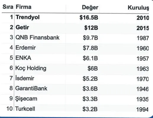 Türkiye, pandemi döneminde dünyadaki gelişmelere paralel veri ekonomisi şirketlerinin yükseldiği ülkelerden biri oldu. Önceki yıllarda sanayi kuruluşları, bankalar ve telekom şirketlerinin yer aldığı en değerli şirketler listesinin tepesine veri şirketleri oturdu. Türkiye girişim ekosistemi 2021 rakamlarını 19 Ocak'ta açıklayacak olan Startups.Watch verilerine göre 2021 önceki yıllara göre büyük değişim ve dönüşümün yaşandığı bir yıl oldu. Buna göre henüz 2010 yılında kurulan Trendyol ilk sırada yer alırken ikinci sıraya ise 2015 yılında kurulan Getir yerleşti. Aldıkları yatırım ve satın almalardan sonra Trendyol'un değerlemesi 16.5 milyar dolara ulaşırken, Getir de 12 milyar dolar değerleme ile ikinci sıraya yükseldi.