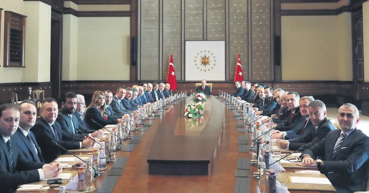 Cumhurbaşkanı Recep Tayyip Erdoğan, Gençlik ve Spor Bakanlığı'nın düzenlediği 'Spor Kulüpleri ve Federasyonları Çalıştayı' için Ankara'da bulunan Kulüpler Birliği üyelerini dün Cumhurbaşkanlığı Külliyesi'nde kabul etti. Gençlik ve Spor Bakanı Mehmet Muharrem Kasapoğlu önderliğindeki heyette; TFF Başkanı Nihat Özdemir, TFF 1. Başkan Vekili Servet Yardımcı, TFF Başkan Vekili Mehmet Baykan, TFF Yönetim ve İcra Kurulu üyesi Hamit Altıntop, Kulüpler Birliği Vakfı Başkanı Mehmet Sepil ve Süper Lig kulüp başkanlarının yanı sıra Gençlik ve Spor Bakan Yardımcısı ve Cumhurbaşkanı Başdanışmanı Hamza Yerlikaya ile AK Parti İzmir Milletvekili eski milli futbolcu Alpay Özalan da hazır bulundu.