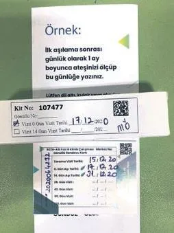 Sorduğum soruların ardından bilgisayarın bana verdiği numara ile aşı kutum geldi. Hemşire tarafından omuz ile dirsek arasında bir yere aşı vuruldu. Aşının yapıldığını hissetmedim. Ne bir uyuşukluk ne de bir sancı yaşadım. Üzerinden 48 saat geçti. Şu anda sadece orta şiddette baş ağrım var. Bundan sonra bakalım neler yaşayacağız. Bu arada aşı grubunda mı plasebo (aşı olmayan sıvı) grubunda mı olduğumu bilmiyorum! Bunu 1 ay sonra öğreneceğim.