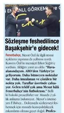 SABAH Gazetesi'nde dün yazdığım köşede Mesut Özil'in sözleşmesinin feshi sonrası Başakşehir'e gideceğini ifade etmiştim. Dün yıldız futbolcu, İstanbul'un bir başka temsilcisinin yolunu tutarak başkan Göksel Gümüşdağ ile konuştu ve el sıkıştı. Mesut açtığı bu yeni sayfaya daha parlak izler bırakmalı... Umarım Türk futbolu için de Başakşehir için de hayırlı olur. 33 yaşındaki oyuncu, F.Bahçe ile sözleşmesini feshederken 5 milyon Euro bıraktı (Alacağı bir rakam da olacak).