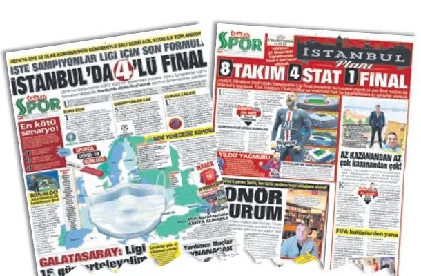 Şampiyonlar Ligi ve Avrupa Ligi'nde sezonu bitirebilmek için UEFA, gelişmeleri izledi, salgının istatistiklerini takip etti. Liglerin devam edeceği tarih olarak o günlerde Nisan sonu tahmini yap-ı lıyordu. Nisan ayında salgının etkisi tavan yapınca bu takvim de uygulanamaz oldu. Yine arşivden bir manşeti çıkartalım.