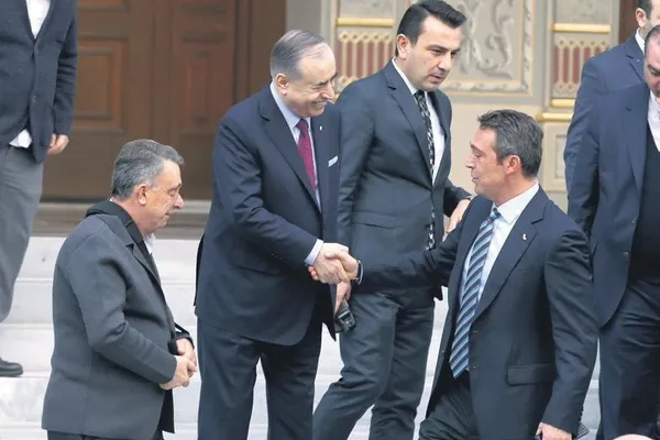 Fenerbahçe Başkanı Ali Koç, çıkışta Galatasaray Başkanı Mustafa Cengiz ile tokalaşırken, Trabzonspor Başkanı Ahmet Ağaoğlu ile de sarılarak samimi görüntüler verdi.