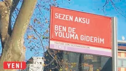 Üzerinde "Sezen Aksu Ben de yoluma giderim" yazan..
