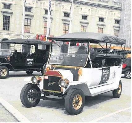 Bu da gene Viyana'da, atın yerini elektrikli motorun aldığı çağdaş fayton. Tasarım geleneksel. Sadece beygir yerine, beygirgücü ölçümlü motorlar çekiyor. İsterseniz aynen fayton gibi üstü geriye doğru açılıyor.
