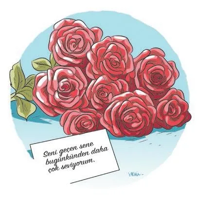 Tıpkı eski günlerde olduğu gibi.. Kırmızı gülleri, üzerinde küçük kartıyla birlikte eşikteydi.. Sevgililer Günü'nü kutluyordu.