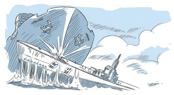 "Dumlupınar Denizaltımız, 1953 yılında, 3 Nisan'ı 4 Nisan'a bağlayan gece su üstünden seyrederken, saat 2.10 sularında Çanakkale Boğazı'ndaki Nara Burnu açıklarında Naboland adlı bir İsveç yük gemisiyle çarpıştı. Naboland, baş torpido dairesinin sancak tarafından Dumlupınar'a girdi.