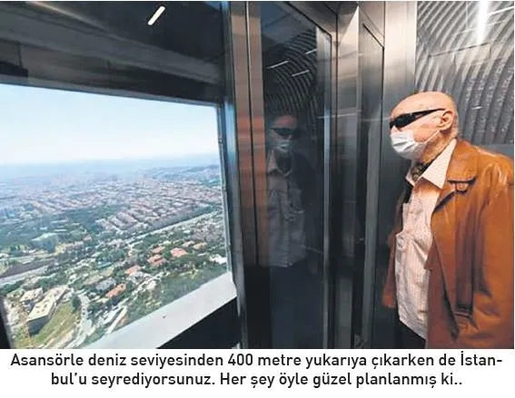 İstanbul Televizyon Kulesi'nin restoran katındayız. Burası ziyaretçilerin çıkabileceği en yüksek nokta.. Nokta lafın gelişi.. 360 adlı restoran var orda..