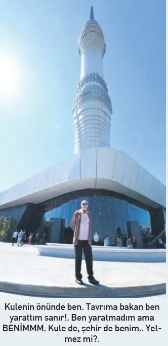İşte bu sözü gerçekleştiren bir anıt yapıdayım şimdi.. Şimdiye kadar "Bir kule bulacağız" diyenlerin derme çatma çelik örgüleriyle dolu bir çöplüktü Çamlıca..