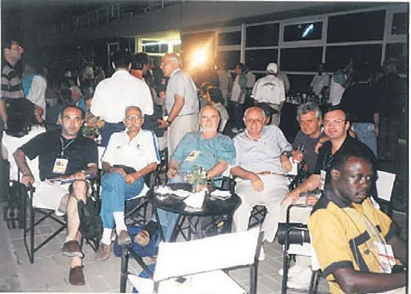 En başta, o zaman gencecik, bugün Hürriyet'in spor müdürü Mehmet Aslan var. Cüneyt Ağbi, "Bu çocukta tam Olimpik kafa var. Aramıza alalım, yetişsin" demişti. Almıştık biz de.. Onun yanında Cüneyt Ağbi.. Sonra ben.. Nuyan Ağbi.. Onun yanındakini hatırlayamadım. En sonda da Kenan..