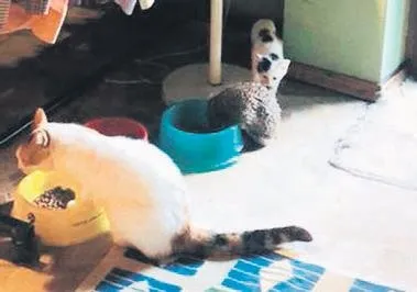 (Kedilerim ve Kirpilerim, bahçeye açılan odamda birlikte sabah kahvaltısı yapıyorlar.. Bu sahne ilham verici değil de nedir?.)