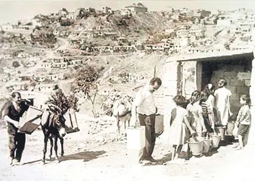 İşte Taşlıtarla'nın ilk günlerinden bir resim. Köy evlerinde akarsu olmadığı için, içme dahil her türlü kullanma suyu çeşmeden tenekelerle taşınırdı. Eşekli sakalar da, dört teneke doldurur, köy evlerine tenekesi 25 kuruştan satarlardı. Köylerdeki çeşme başları, bugünkü "internette tanışma" uygulamalarının doğuşuydu aslında. Bakışmalar, fısıldaşmalar öyle başlardı. Sadece çöpçatanlık değil tabii. Asıl kamuoyunun oluşma yerleriydi, çeşme başları. Ülkenin, yörenin, köyün sorunları da çeşme başlarında tartışılırdı. Mekteb-i Mülkiye'deki ünlü sosyoloji hocamız İbrahim Yasa anlatmıştı, çeşme başının önemini.. Tabii her gün birkaç defa gitmek zorunda kalınan çeşmeye uzak olmasın diye, köy de çeşmenin civarında gelişirdi.