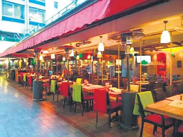 Her masa dolu. İçerde diplerde bir masa buldular bize..