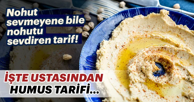 Malzemelerimizden nohut, yarım çay bardağı sıvı yağ, 1 tatlı kaşığı tuzu blendera koyup karıştırıyoruz. Daha sonra tahin ve kimyonu da ekledikten sonra tekrar karıştırıyoruz. Süsleme işlemini yaptıktan sonra humus hazır!