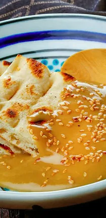 İyice erimiş tereyağını geniş bir kap içinde tahin bal ile çırpma teli ile iyice karıştırın Kavrulmuş Susam tırnaklı pide ile servis edin.