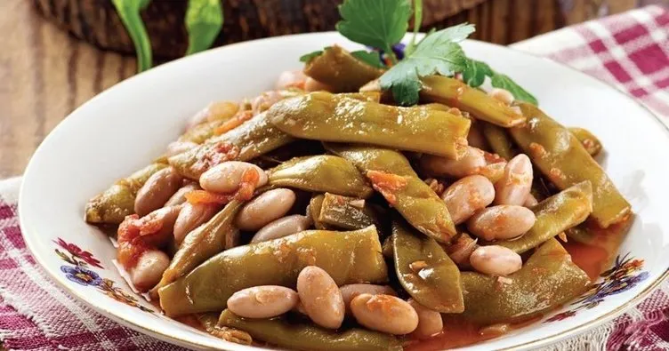 Tencereye aldığınız zeytinyağında yemeklik doğranmış soğan ve kıyılmış sarmısağı soteleyin. Kabukları soyulup küp doğranmış domates ve kesmeşekeri ilave edip karıştırın. Ayıklanmış ve ortadan ikiye kırılmış fasulye ile barbunyayı katın. Tuzunu ayarlayıp, üzerine çıkacak kadar su ekleyin. Tüm malzemeyi şöyle bir karıştırıp tencerenin kapağını kapatın. 5 dakika harlı sonra kısık ateşte yumuşayana kadar pişirin. Sıcak, ılık veya soğuk olarak servis yapabilirsiniz
