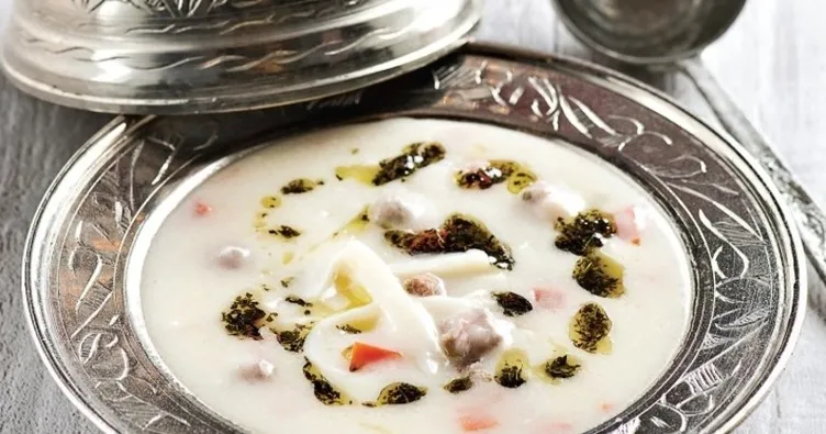 Tencereye 7-8 su bardağı suyu alın. Kıyma, tuz ve karabiberi yoğurup küçük köfteler hazırlayın. Kaynayan suyun içine köfte, erişte ve küp doğranmış domatesi ilave edip pişmeye bırakın. Un ile yoğurdu bir kapta çırpın ve çorba suyundan 1 kepçe alıp una ekleyin. Karıştırdıktan sonra yavaşça çorbanın içine katın ve bir yandan da karıştırın. Bir taşım daha kaynatın. Üzeri için tereyağını eritin ve naneyi ilave edin. Çorbanın üzerine gezdirin ve sıcak servis yapın.