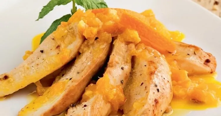 Öncelikle 3 adet portakalın suyunu sıkın. Kalan portakalların kabuklarını soyup küp doğrayın. 1 adet portakalın kabuğunun beyaz kısımlarını alıp ince doğrayın. Soğanı ince kıyın. Tozşeker ve suyu küçük bir tencereye alıp kısık ateşte koyu bir şerbet kıvamına gelene dek pişirin. Üzerine soğan, sirke ve portakal suyu ekleyin. Arada bir karıştırarak boza kıvamına gelene dek pişirin. Üzerine doğranmış portakal, portakal kabuğu, 2 çorba kaşığı tereyağı, zencefil ve tuz ekleyin. Suyunu yarı yarıya çekene dek pişirin. Tavuk göğüslerinden fileto çıkarın. Tereyağı ve sıvıyağı bir tavaya alıp filetoları önlü arkalı kızartın. Sıcakken üzerlerine karabiber ve tuz serpin. Servis tabaklarına alın. Portakallı sos gezdirin. Portakal dilimleri ile süsleyerek servis yapın.