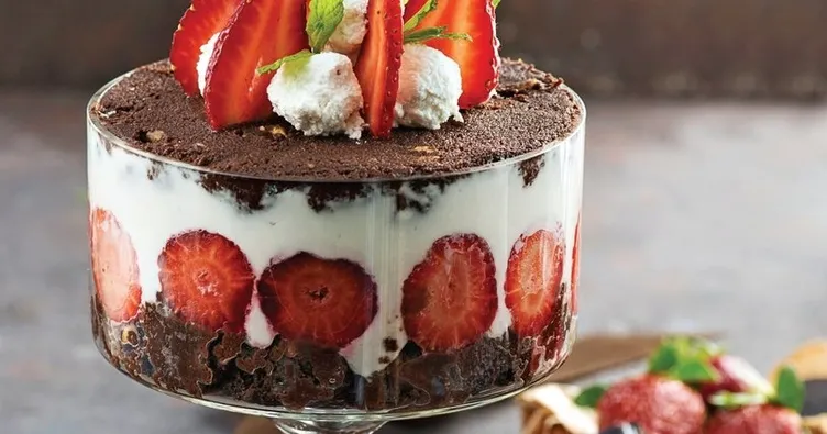 Pandispanyayı elinizle ufalayıp pişmiş Türk kahvesiyle karıştırın ve üzerine ceviz ekleyin. Ganaj için çikolatayı benmari usulü eritin. Daha sonra kremayı ekleyip karıştırın. Kıvam alınca biraz ılıtın ve pandispanyalı karışıma katıp tüm malzemeyi birleştirin. Başka bir kapta lor ve pudra şekerini karıştırın. Yuvarlak ve derin bir kabın altına, pandispanyalı karışımın yarısını bir kaşık yardımıyla bastırarak yerleştirin. İnce dilimlediğiniz çilekleri kabın kenarlarını kapatacak şekilde dizin. Lorlu karışımdan 3 çorba kaşığını kenara ayırın. Kalanı kaba alıp kenarlarını da kaplayacak şekilde kaşıkla düzeltin. En üste kalan pandispanyalı karışımı koyup düzeltin. Süslemek için ayırdığınız lorlu karışımdan küçük toplar yapın ve tatlının üzerine yerleştirin. Çilek dilimleri ve nane yaprakları ile süsleyerek servis yapın.