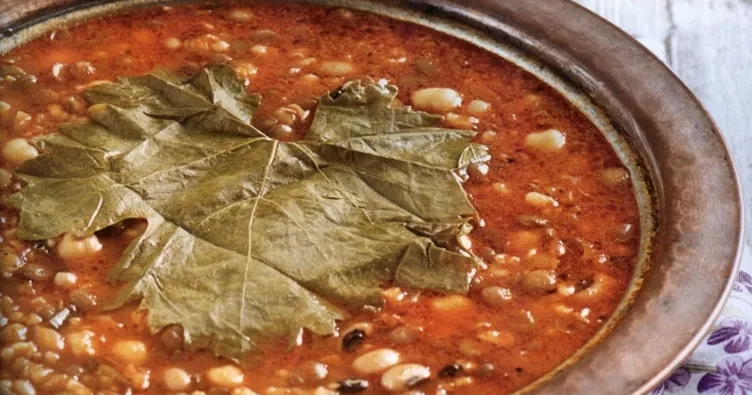 Nohut ve kuru börülceyi bir gece öncesinden ayrı kaplarda ıslatın. Ertesi gün tencereye önce nohudu alıp üzerine çıkacak kadar su ekleyin ve pişmeye bırakın. Pişmesine yakın kuru börülceyi ekleyin ve onun da pişmesine yakın yeşil mercimeği katın (bu arada suyu azalırsa sıcak su ekleyin]. Mercimek hafif pişince yıkanmış süzülmüş bulguru ekleyin. Bulgur yumuşayana kadar pişirmeye devam edin. Ayrı bir tencereye aldığınız tereyağı ve sıvıyağ karışımında kıyılmış soğanı kavurun. Salça, tuz ve pul biberi katıp kavurmaya devam edin. 1 -2 su bardağı ekleyip kaynatın. Kaynayan bu karışımın içine kıyılmış maydanoz, nane ve dereotunu ekleyin. Birkaç kez çevirdikten sonra haşlanmış bakliyattı karışıma ekleyin ve bir yandan da karıştırın. Yemeği 1 -2 taşım kaynatın ve ocaktan alıp 15-20 dakika dinlendirin, içine 1 adet kıyılmış acı Arnavut biberi ekleyip karıştırın. Asma yapraklarını ılık sudan geçirerek fazla tuzunu alıp, yemekle birlikte servis yapın. Yerken bir adet asma yaprağını servis tabağına alıp ortasına 1 çorba kaşığı bakliyattı harçtan koyun. Kaşıkla kenarlarını üst üste kapatın ve bu şekilde yiyin.