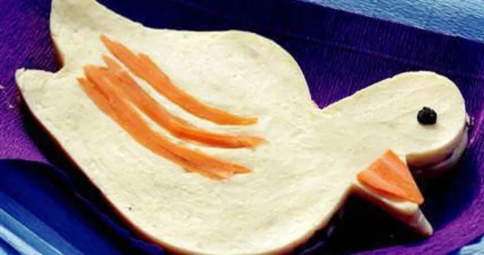 Üzerine sosis ve kaşar peyniri serpin. Kalan patatesi sosisli karışımın üzerine yayın. Civcivi kalıbından yağlı kağıt serilmiş bir fırın tepsisine çıkarın. Önceden ısıtılmış 175 derece fırında 5-10 dakika pişirin. Servis tabağına aktarın. Havuçtan kanat, zeytin ezmesinden göz yaparak ikram edin.
