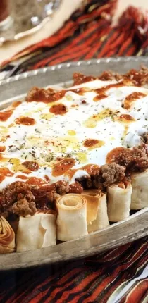 Yufkaların her birini ayrı ayrı rulo yapın ve 2 cm genişliğinde kesin. Fırın tepsisine yan yana gelecek şekilde dizin ve üzerine erittiğiniz tereyağını gezdirin. Kıymayı tuz, karabiber ve pul biberle kavurup yufkanın üzerine yayın. Üzeri için yoğurt ve sarımsağı çırpın. Kıymanın üzerine gezdirin ve önceden ısıtılmış 180 derece fırında 15-20 dakika pişirin. Tereyağını eritin ve salçayı ekleyip bir kaç kez çevirin. Fırından çıkan sironun üzerine gezdirin ve sıcak olarak servis yapın.