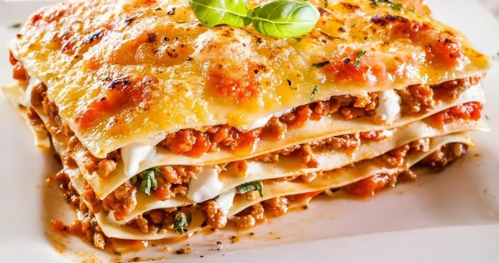 Ocaktan alınca, üzerine rendelenmiş kaşar peyniri ekleyip karıştırın. Cam bir kalıba lazanya karelerini döşeyin. Üzerine beşamel sosu gezdirip, kıymalı sos koyun. Tekrar lazanya yapraklarıyla kapatın. Üzerine beşamel sos gezdirip, kıymalı harcı yayın. Yeniden lazanya yaprakları kapatıp, en üste de beşamel sos gezdirin. Dilerseniz en üste de rendelenmiş kaşar peyniri serpin. Önceden ısıtılmış 180 derece fırında, lazanyanın üzeri kızarana dek pişirin. Sıcak servis yapın.