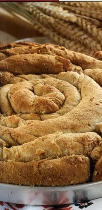 Dinlendirilmiş olan hamurları 3 eşit parçaya bölerek ayırınız ve yumaklar elde ediniz. Her bir yumak elde ve oklava yardımı ile açılır. Ceviz, haşhaş yağ ile karıştırılarak iç harcı elde edilir. Hamur açılır iç harç her tarafına yayılır ve 3 eşit parçaya uzunlamasına kesilir. Kesilen tüm parçalar üst üste konulur ve el ile açılır. Açılan harç tekrar e bölünerek uzunlamasına açılır. Her iki uç kısım biri biri dışa olacak şekilde katlanır ve bu şekilde burgu elde edilir. Elde edilen uzun çubuklar rulo şeklinde tepsiye dizilir. Üzerine yumurta sarısı sürülerek 40 c ortamda 10 dk. Dinlendirilir. 200 c fırında 10-12 dakika pişirilir.