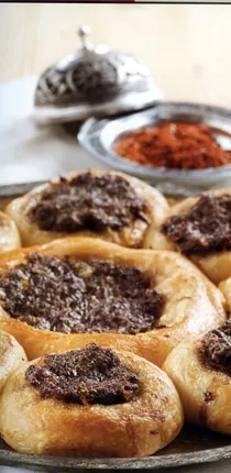 Üzeri için soğanları rendeleyin. Kıyma, domates, maydanoz ve biber salçası, tuz, pul biber, kimyon ve karabiberi iyice karıştın. Hazırladığınız içi hamurların üzerine yayarak paylaştırın. Hamurların mayalanması için 1 saat bekletin ve önceden ısıtılmış 200 derece fırında üzeri kızarıncaya kadar pişirin. Sıcak olarak servis yapın.