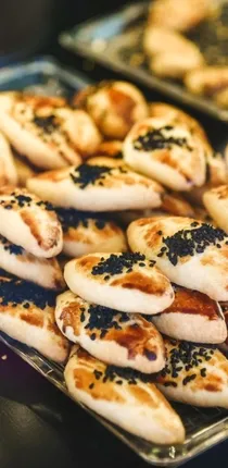 Derin bir kasede yoğurt, yumurta sarısı, margarin ve zeytinyağını karıştırın. Mahlep, sirke, toz şeker, susam, çörek otu ve tuzu ilave edip bütün malzemeyi iyice karıştırın. Un ve kabartma tozunu ekleyip yumuşak bir hamur elde edene kadar yoğurun. Hamurun üzerini nemli bir bezle örterek 1 saat dinlendirin. Daha sonra hamurdan ceviz büyüklüğünde parçalar koparıp istediğiniz şekli verin ve yağlanmış fırın tepsisine dizin. Üzerlerine yumurta akı sürüp haşhaş tohumu serpin. Önceden ısıtılmış 180 derece fırında üzerileri hafif pembeleşene kadar pişirin. Ilındıktan sonra servis yapın.