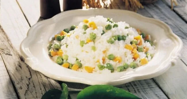 -Pirinçleri ekleyip, 1-2 dakika çevirin. Küp küp doğranmış havuç ile bezelyeyi ve 3 su bardağı suyu ekleyin.