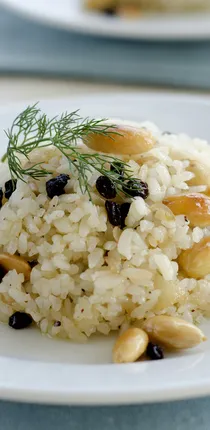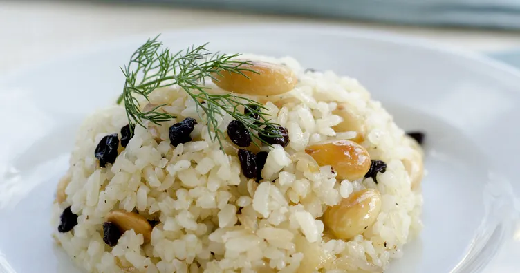 Kuşüzümünü ılık suda 5 dakika bekletin ve süzün. Yayvan bir tencereye zeytinyağı ve bademleri koyarak pembeleşene kadar kavurun. Tereyağı ilave edin. Ardından sırasıyla başbaşı bulgur, kuşüzümü, tuz ve kaynar suyu da ekleyerek kısık ateşte 15 dakika bulgurlar göz göz olana kadar pişmeye bırakın. Bulgur pilavınızı 20 dakika dinlendirdikten sonra servis edebilirsiniz.