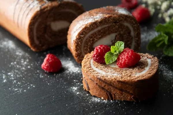 - Keki rulo şeklinde sarın ve soğuması için buzdolabında bekletin.