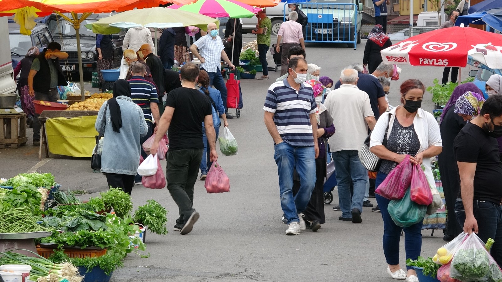 Kdz. Ereğli ilçesine bağlı Müftü Mahallesi’nde, halk arasında ‘Cumartesi Pazarı’ olarak bilinen yerde kurulan pazar yerine gelen vatandaşlar alışverişlerini yaptı. Pazarda tezgahların belli aralıklar ile kurulmasına izin verildi. Tam kapanma döneminde ilk kez izin verilen semt pazarı ile ilgili düşüncelerini aktaran vatandaşlar, bu kararın iki güne çıkmasını istedi. Bazı vatandaşlar sebze meyvelerin fiyatlarının yükseldiğine vurgu yaparken, pazar esnafı ise marketlerin 10-15 günlük ürünleri sattığını, pazarda günlük taze ürünlerin satıldığını ifade etti. Halk için pazarların her zaman açık olması gerektiğine vurgu yapan pazar esnafı ilgiden memnun. İnsan sağlığı için tedbirlerin alınmasına vurgu yapan vatandaşlar, alınan kararların uygulanması gerektiğini söyledi. Pazar yerine gelerek incelemelerde bulunan Kdz. Ereğli Kaymakamı İsmail Çorumluoğlu, semt pazarlarının kurulması ile ilgili bilgiler verirken gözlemlerini aktardı. Kaymakam Çorumluoğlu yaptığı açıklamada, “Bugün dört tane ilçe merkezinde, bir Gülüç beldemizde, bir de köyümüzde pazar açıldı. 6 tane pazarımız açıldı. Bakanlığımızın ve valimizin talimatları gereği gerekli görevlendirmeler yapıldı. Şu ana kadar da büyük bir aksaklık gözükmüyor. Anbean takip ediyoruz. Her pazaryerine hem belediyemizin, hem emniyet, hem de tarımdan arkadaşlar görev başındalar. Eğer bir artış olursa, beklediğimizden daha fazla artışı olursa vatandaşlarımızın geçişini geçici bir süre durdurmayı düşünüyoruz. Kontrollü bir şekilde devam ediyor. Böylelikle vatandaşlarımız alternatif alışveriş noktası olarak pazarları kullanabilirler. Bunun yanında bu pazarlarda Bölücek, Hamzafakılı ve o bölgedeki kendi öz üretimi yapılan maydanoz, soğan ve benzeri ürünlerin de bu pazarlar vasıtasıyla nihai tüketiciye satımını sağlamak istiyoruz. Çünkü o ürünü bekletemiyorsunuz. Özellikle köylü pazarı dediğimiz o kısımda da vatandaşlarımız orada kendi ürünlerini satma imkanları oluyor. Görev alan bütün arkadaşlarımıza teşekkür ediyorum. Umarım vatandaşlarımız için güzel bir hizmet olmuş olur. Bakanlığımız 2 gün yapın derse 2 gün yaparız onun dışında bizim lokal olarak karar alma yetkimiz yok. Arz ve talebe göre de değerlendirme yapılacak. Bu işin başarısı nedir, fayda ve mahsurları nedir. Türkiye’nin değişik noktalarındaki uygulamalara da bakılacak.” İfadelerini kullandı.