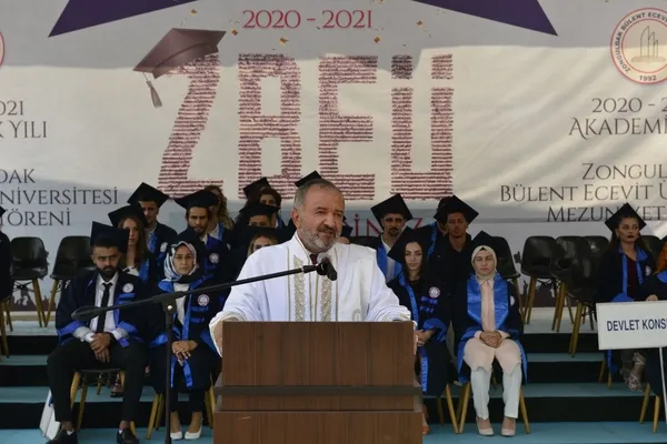 BEÜ Rektörü Prof. Dr. Mustafa Çufalı konuşmasına ülkemizde son zamanlarda yaşanan doğal afetlerde yaşamını yitiren vatandaşlara Allah'tan rahmet, yakınlarına başsağlığı dileyerek başladı. Rektör Çufalı; "Pandemi sebebiyle son 3 dönemdir farklı bir eğitim modeline geçmek durumunda kaldık. Bugün mezunlarını verdiğimiz uygulamaların yoğun olduğu alanlarda uzaktan eğitim daha da zor oldu. İnşallah artacak aşı olma oranlarıyla yüz yüze eğitime tekrar dönmek istiyoruz. Pandemiden ötürü her ne kadar aldığınız eğitimin bir kısmını çevrim içi gerçekleşse de, mezuniyet töreninizi tüm tedbirleri alarak yüz yüze bir mezuniyet yapmak istedik" dedi.