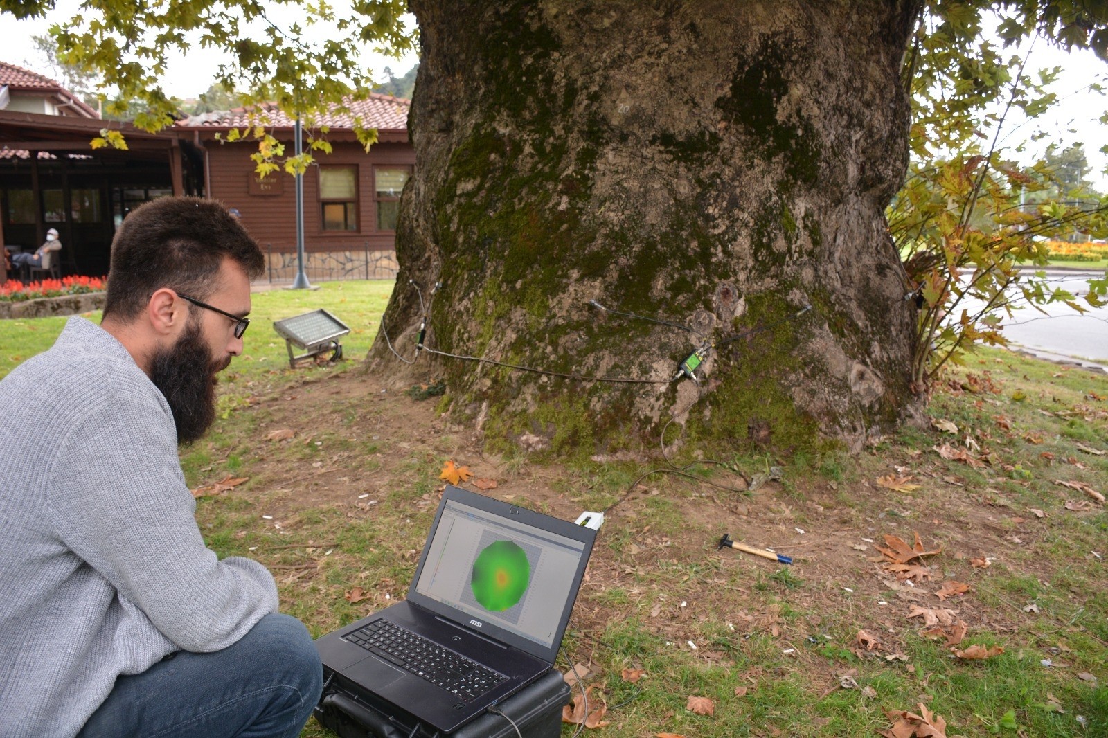 Zonguldak’ın Ereğli İlçe Belediyesi kent genelindeki anıt ağaç ve diğer araç türlerinin Akustik Tomografi yöntemiyle sağlıklarını kontrol ediyor.