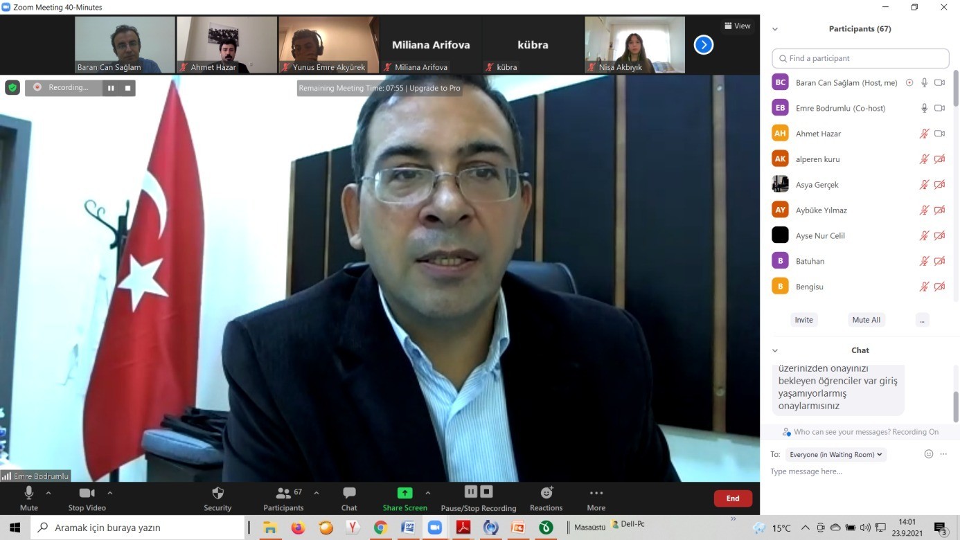 Çevrimiçi olarak düzenlenen etkinliğe Diş Hekimliği Fakültesi Dekanı Prof. Dr. Emre Bodrumlu, dekan yardımcısı Prof. Dr. Baran Can Sağlam ve Dönem I danışmanı Dr. Öğr. Üyesi Ahmet Hazar ve Dönem I öğrencileri katıldı.