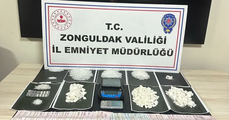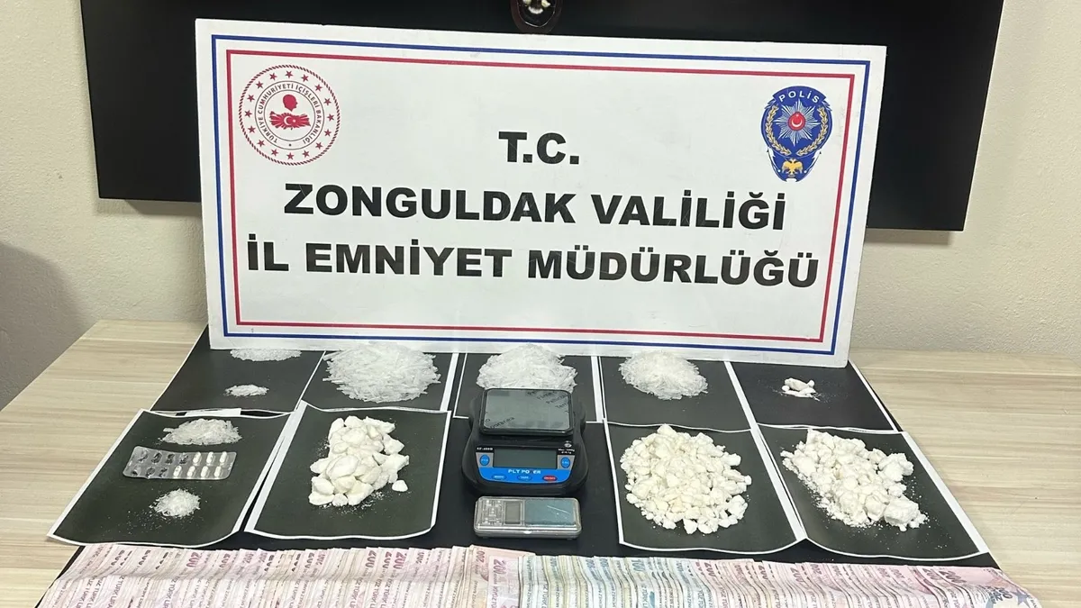 Emniyet ekiplerinin titizlikle yürüttüğü aramalarda 755 gram metamfetamin, 7 adet sentetik ecza, 2 adet hassas terazi ve 51 bin 650 TL nakit para bulundu. Operasyon kapsamında R.Y.Ç., N.Ç., R.E., G.A., U.T., İ.B. ve A.F.Ü. isimli şahıslar yakalandı. Yürütülen soruşturma çerçevesinde R.E., N.Ç., G.A. ve R.Y.Ç. adli makamlara sevk edilmek üzere gözaltında tutulurken, diğer şahıslarla ilgili işlemler sürüyor. Zonguldak İl Emniyet Müdürlüğü, uyuşturucu madde ticareti ve kullanımına karşı mücadelenin kesintisiz süreceğini vurguladı.